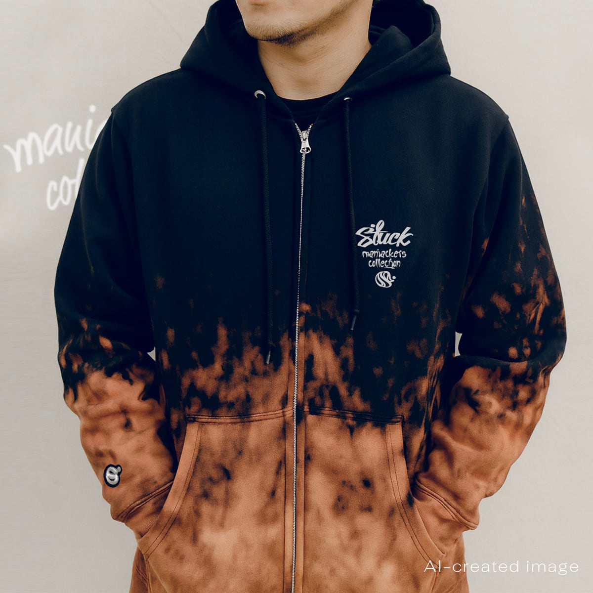 Lサイズ ブリーチジップパーカー 1点物 現物商品 唯一無二 メンズ レディース 裏起毛 12.7オンス