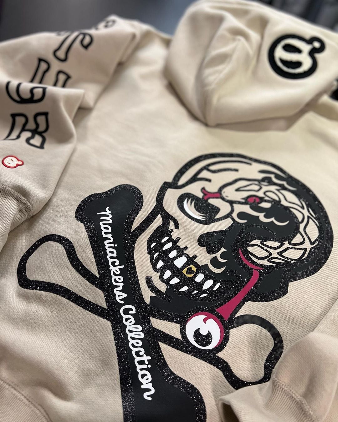 大人気スカルモチーフをキラキラグリッターブラックとマットブラックで表現したビッグプリントデザイン。メンズ・レディースどちらにもおすすめです。秋冬のおしゃれにぴったりな厚手の裏起毛パーカーで、しっかりとした12オンスの生地を使用しておりますので寒い日でも温かさをキープ。大きいサイズもご用意しており3XLまで幅広く対応しております。